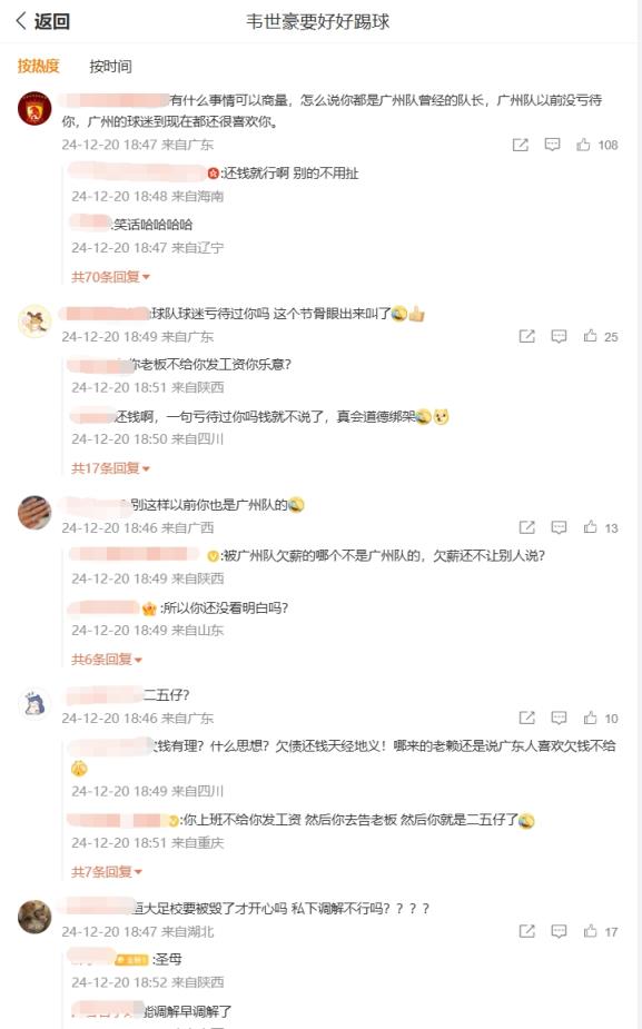 你怎么看?韋世豪微博評論區兩種聲音:廣州待你不薄vs欠債還錢